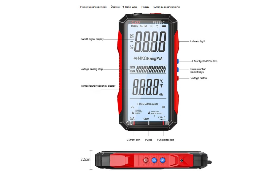 • Akıllı dijital multimetre:Bu akıllı dijital multimetre sadece doğru değil, aynı zamanda akıllı, kullanıcıların daha iyi kararlar vermelerine yardımcı olmak için ek bilgi ve analiz sağlar.